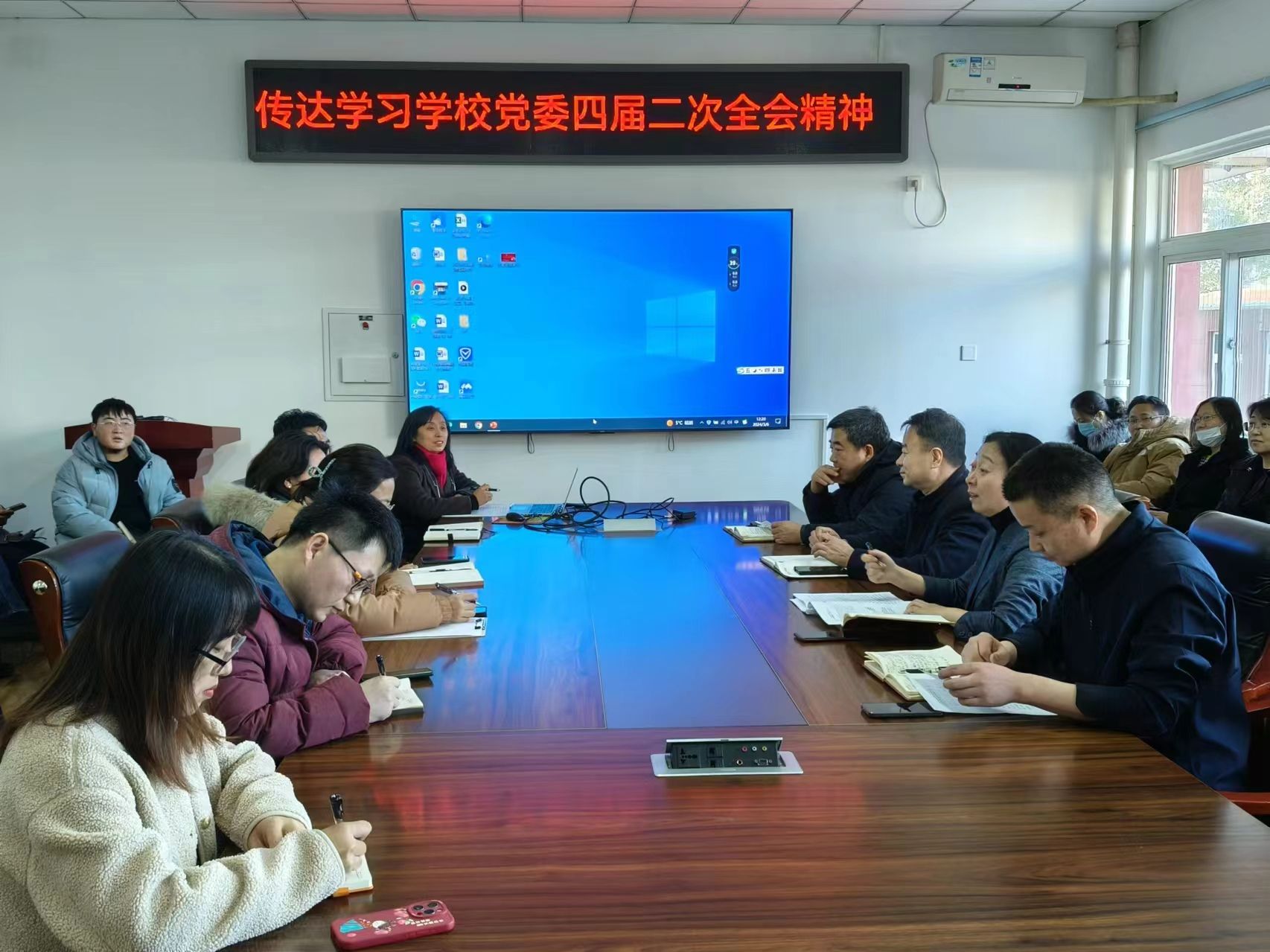 公司领导班子成员及全体教职工参加会议。