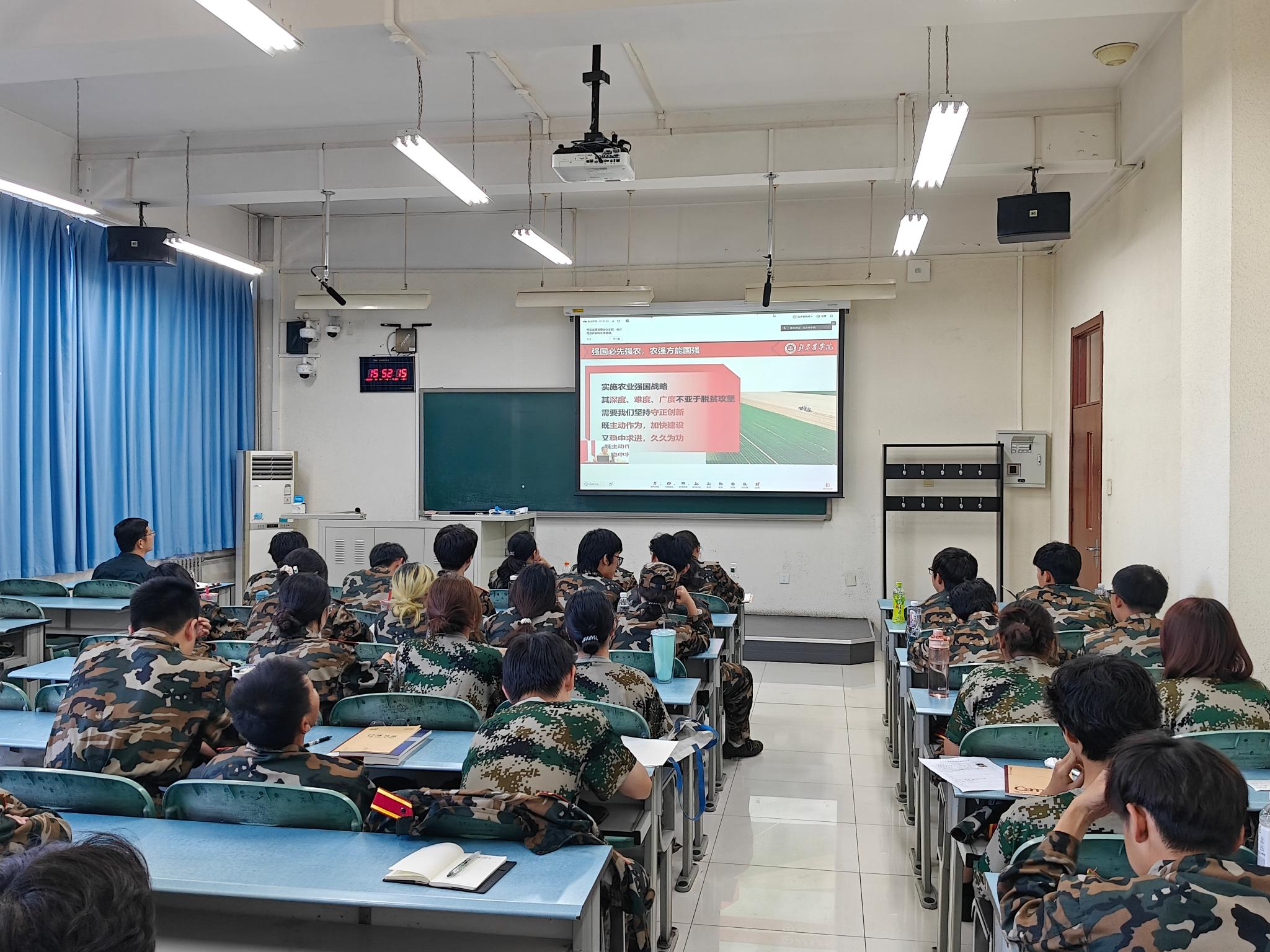 赵锋为同学们深刻讲解了当前严峻复杂的国际形势,深入分析了“中国之治”与“西方之乱”形成的鲜明对比,带领同学们共同回顾了中华民族从站起来、富起来到强起来的伟大飞跃和光辉历程,阐释了伟大抗战精神中所蕴含的强大力量。深入解读了“解决好‘三农’问题作为全党工作重中之重”以及“民族要复兴,乡村必振兴”的重要性和深刻内涵,深刻阐释了加快建设农业强国、全面推进乡村振兴的重大意义和现实紧迫性,全面回顾了我国农业农村现代化建设取得的显著成效,深入分析了存在的主要问题以及下一步重点举措。详细介绍了公司历史沿革、优良传统、办学特色,结合服务首都“四个中心”功能建设和率先基本实现农业农村现代化的现实需求,带领同学们共同回顾了公司在服务新时代首都发展和推动自身高质量发展取得的进展与成效。